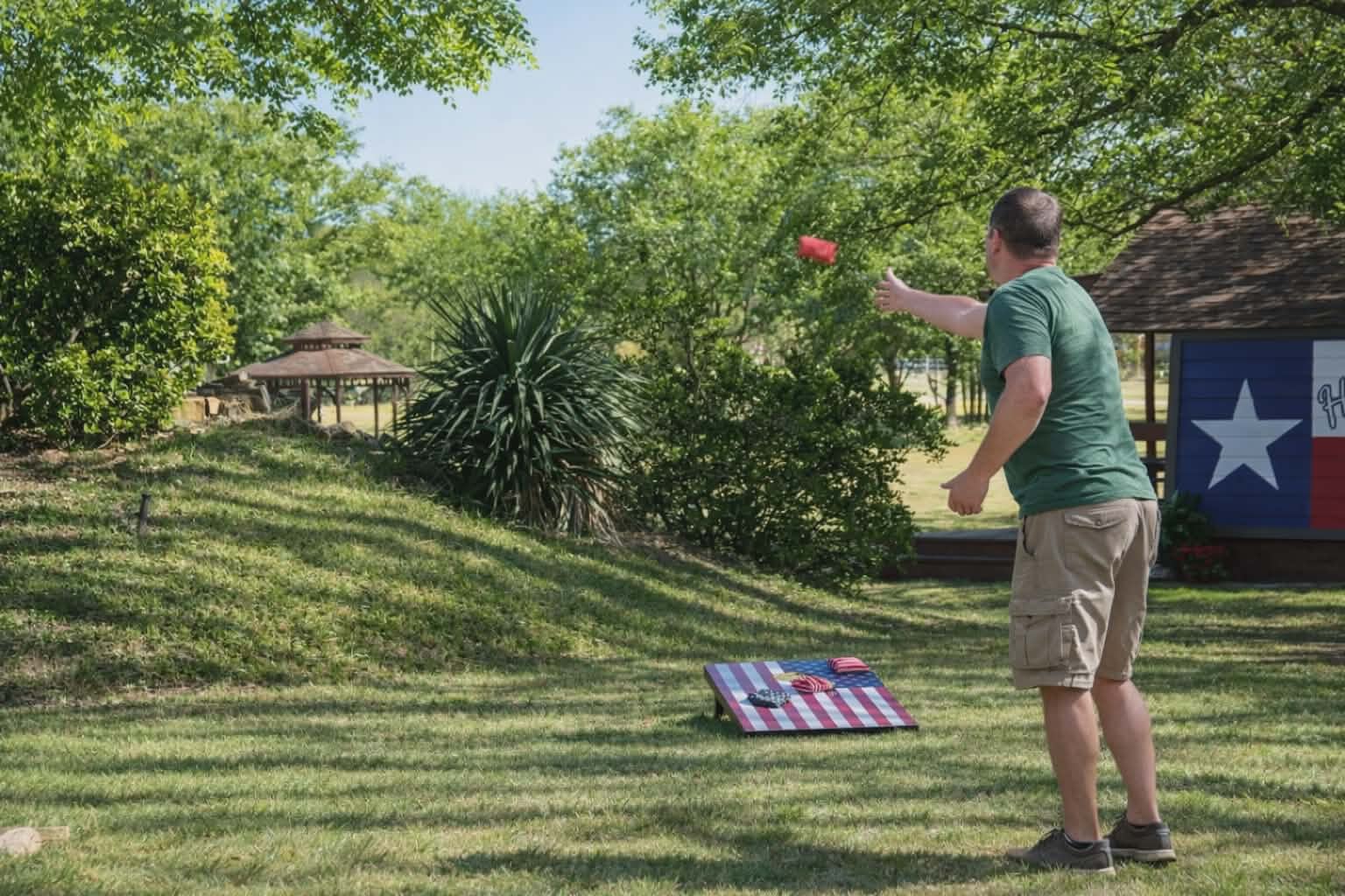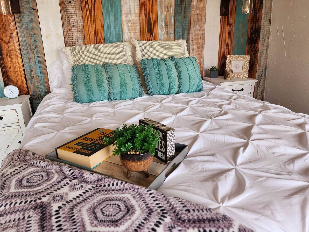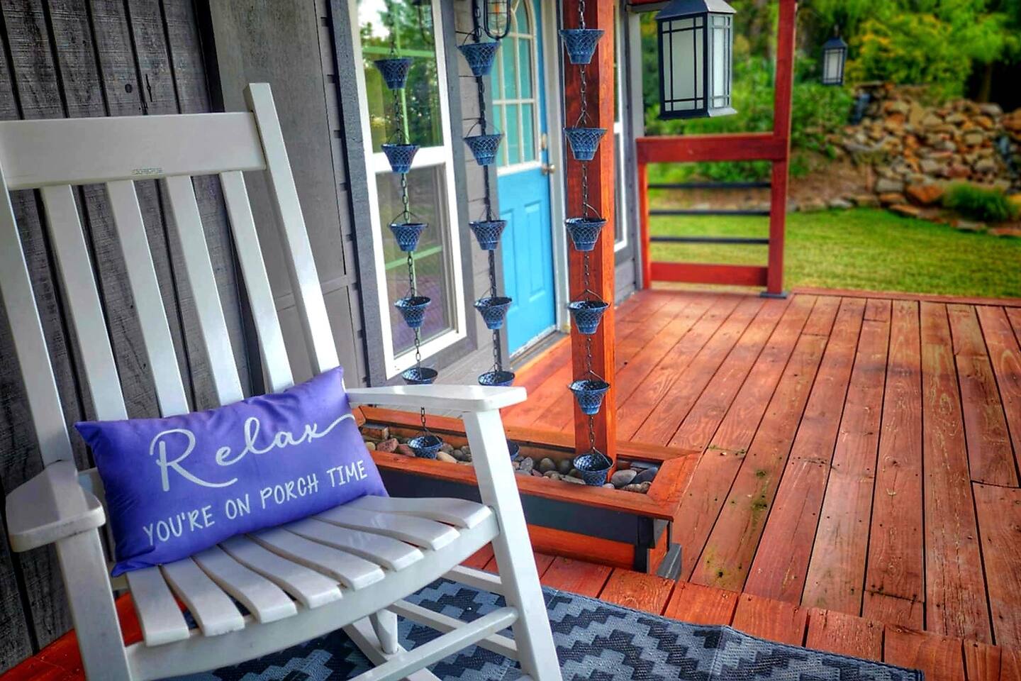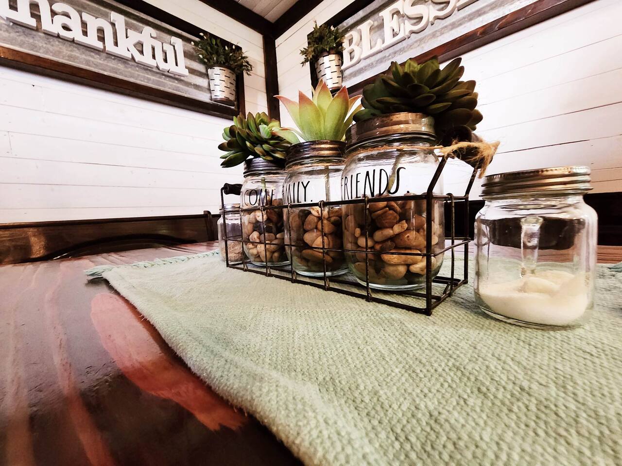 Unwind after a full day of exploring in a peaceful, cabin setting within 45 minutes of all DFW area attractions. A country getaway on 5 acres with a stocked pond. Begin each morning with a cup of coffee while watching the pond come to life from the spacious front porch rocking chairs. Evenings are made for gathering around the firepit, roasting s’mores under starry skies, and making memories. Experience the charm of a tiny home without sacrificing comfort or relaxation space.
